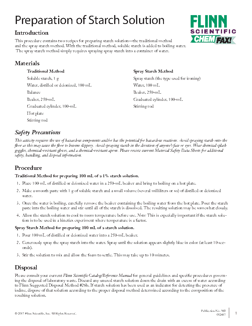 Starch Solution Stabilized Fisher Chemical SS4081 Print Starch Solution Stabilized Fisher Chemical For iodometry. C Preparation of maize starch. Add one gram of starch to.